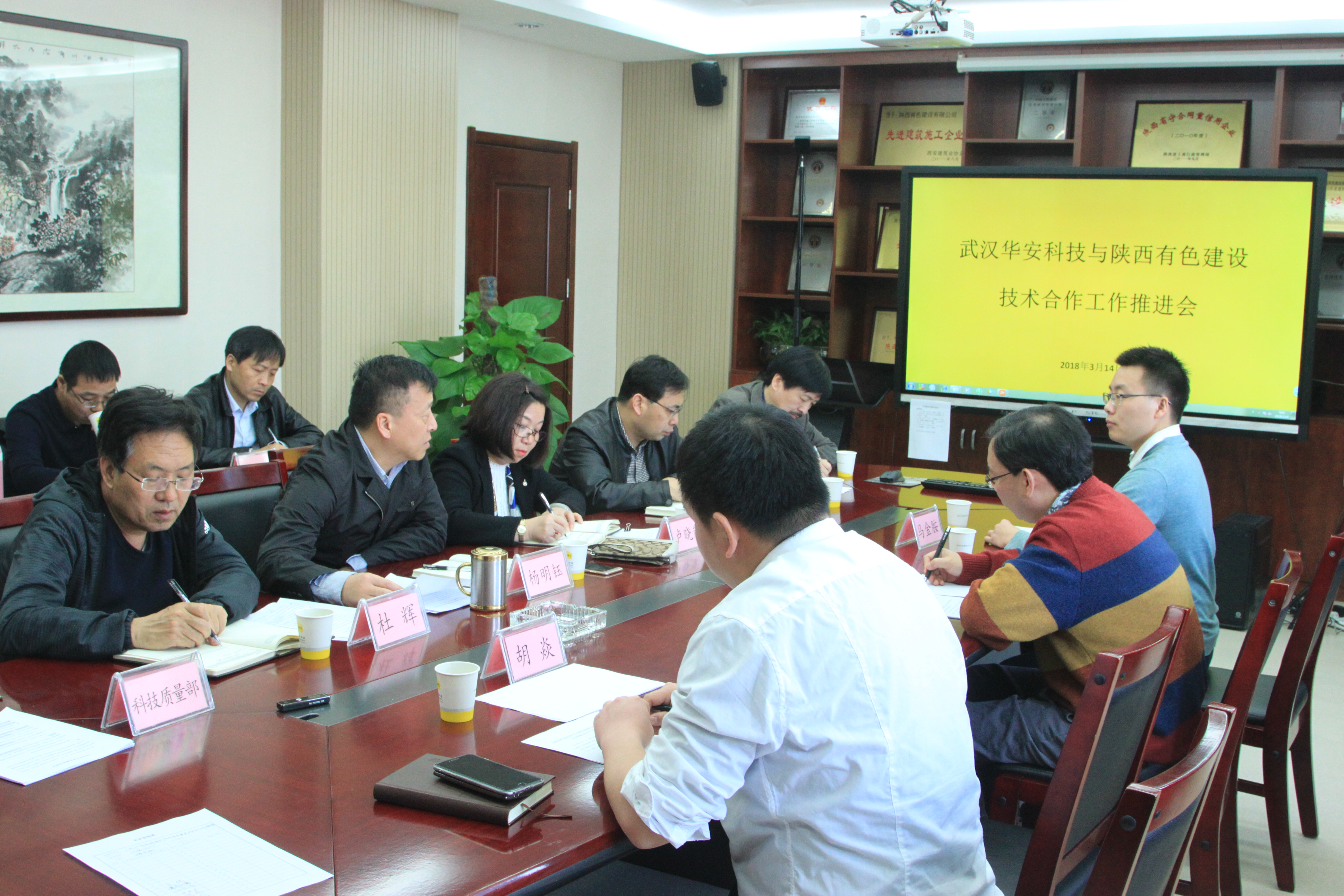 3月14日上午,公司在六樓會議室召開BIM技術(shù)工程應(yīng)用中心2017年度工作總結(jié)會暨武漢華安科技股份有限公司與陜西有色建設(shè)有限公司技術(shù)合作推進會。會議由總經(jīng)理楊明鈺主持。董事長盧曉嵐和公司相關(guān)領(lǐng)導(dǎo)、相關(guān)部門負責(zé)人、華安科技董事長代松、BIM中心負責(zé)人胡焱主任參加了此次會議。