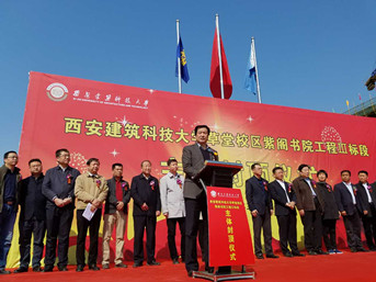 3月31日上午,陜西有色建設(shè)有限公司在建大紫閣書(shū)院項(xiàng)目施工現(xiàn)場(chǎng),隆重舉行了西安建筑科技大學(xué)草堂校區(qū)紫閣書(shū)院工程Ⅲ標(biāo)段工程主體封頂儀式。儀式由建大新校區(qū)建設(shè)工程指揮部辦公室主任武六元主持,公司副總經(jīng)理史濤及學(xué)校相關(guān)負(fù)責(zé)人出席此次活動(dòng)。
